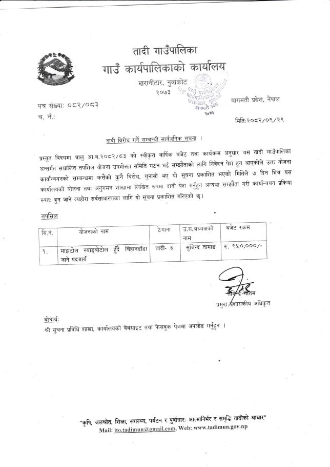 दावि विरोध गर्ने सम्बन्धी सार्वजनिक सूचना(प्रकाशित मिति २०८२।०९।२९)