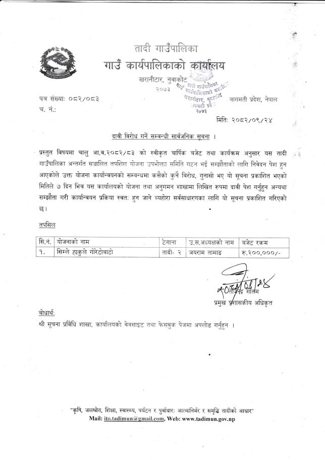 दावि विरोध गर्ने सम्बन्धी सूचना(प्रकाशित मिति २०८२।०९।२४)