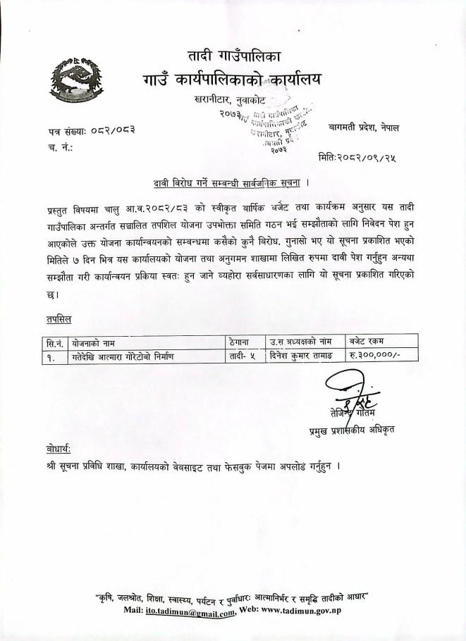 दावी विरोध गर्ने सम्बन्धी सार्वजनिक सूचना(प्रकाशित मिति २०८२।०९।२५)