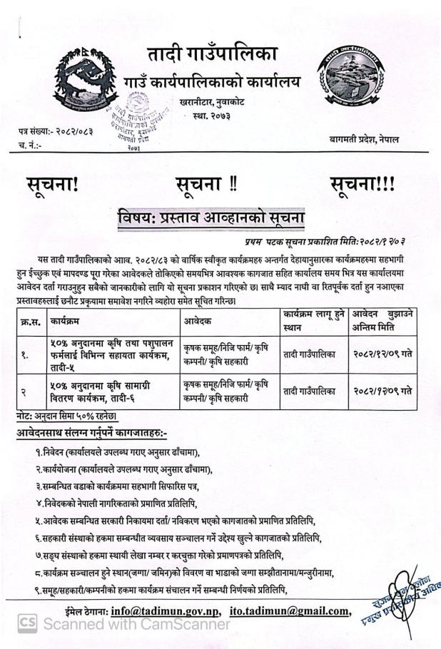 प्रस्ताव आव्हानको सूचना(प्रकाशित मिति २०८२।११।०३)