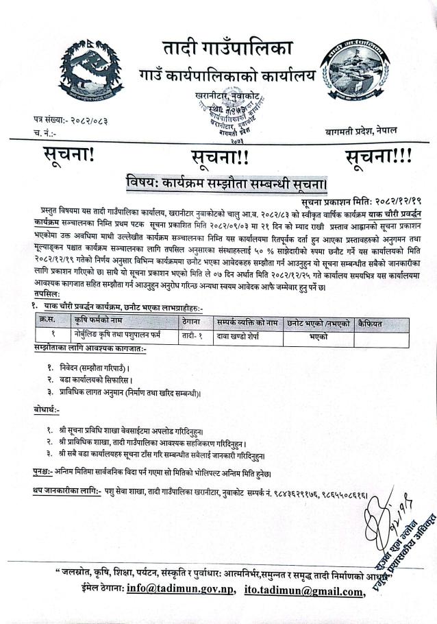 कार्यक्रम सम्झौता सम्बन्धि सूचना(प्रकाशित मिति २०८२।१२।१९)