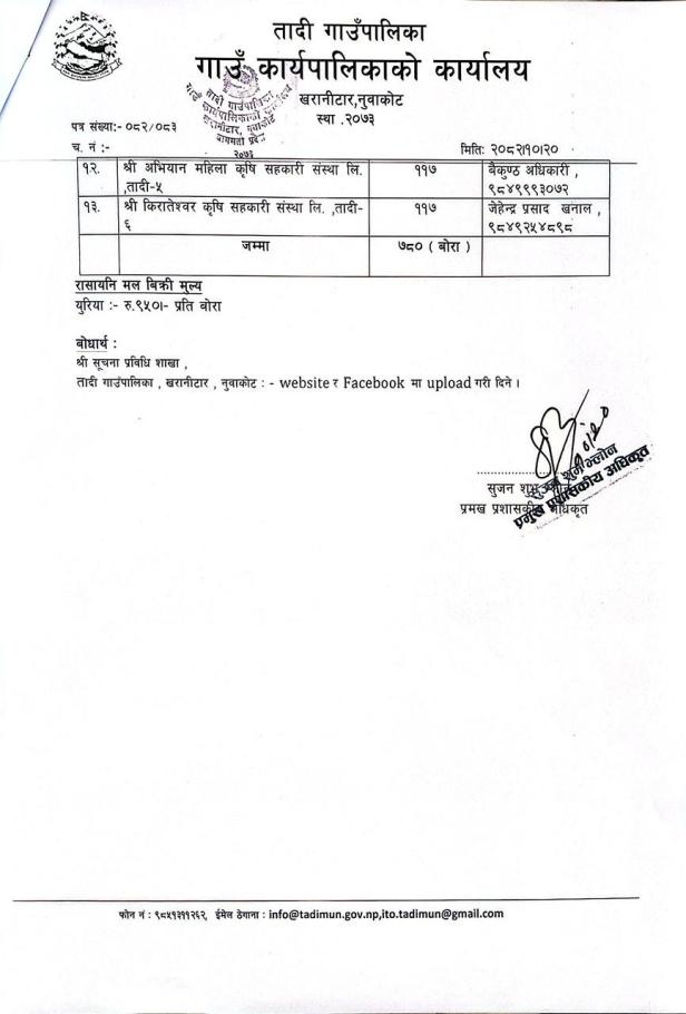 कृषक बर्गमा सूचना जारि गरिएको सम्बन्धमा(सूचना प्रकाशित मिति २०८२।१०।२०)