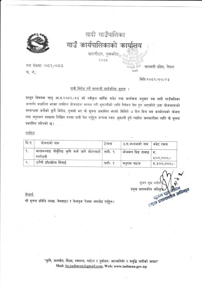 दावी विरोध गर्ने सम्बन्धि सूचना(प्रकाशित मिति २०८२।१०।२३)