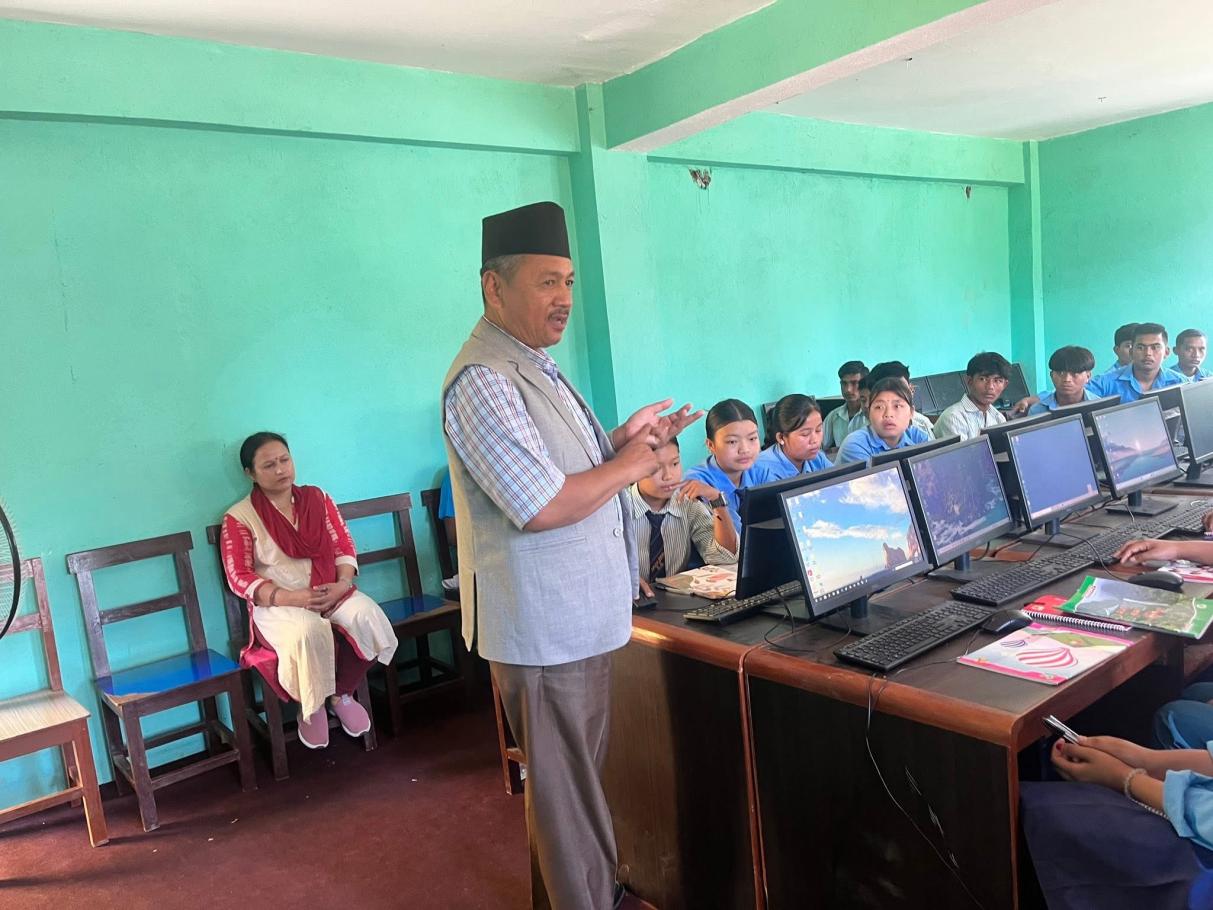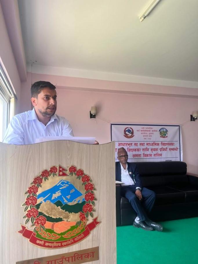 आज मिति २०८२।०२।११ गते तादी गाउँपालिकाको शिक्षा ,युवा तथा खेलकुद शाखाको आयोजनामा दुई दिवशिय आधारभुत तह तथा माध्यामिक विद्यालयका IT श्रोत शिक्षकका लागि सूचना प्रविधि सम्बन्धी क्षमता विकास तालिम कार्यक्रम तादी गाउँपालिकाको प्रमुख प्रशासकीय अधिकृत श्री ध्रुब खनालज्यूको अध्यक्षता ,शिक्षा अधिकृत श्री सन्तोष खनालज्यूको प्रमुख आतिथ्यता साथै आजको पहिलो दिनको तालिम कार्यक्रमका सहजकर्ता तादी गाउँपालिकाको सूचना प्रविधि अधिकृत श्री पुरुषोतम वाग्लेज्यू ,शिक्षक सहजकर्ता श्री दिपक प्रसाद सिटौलाज्यू साथै सामदायिक विद्यालयका शिक्षकज्यूहरुको उल्लेख्य सहभागितामा कार्यक्रम सुभारम्भ ।