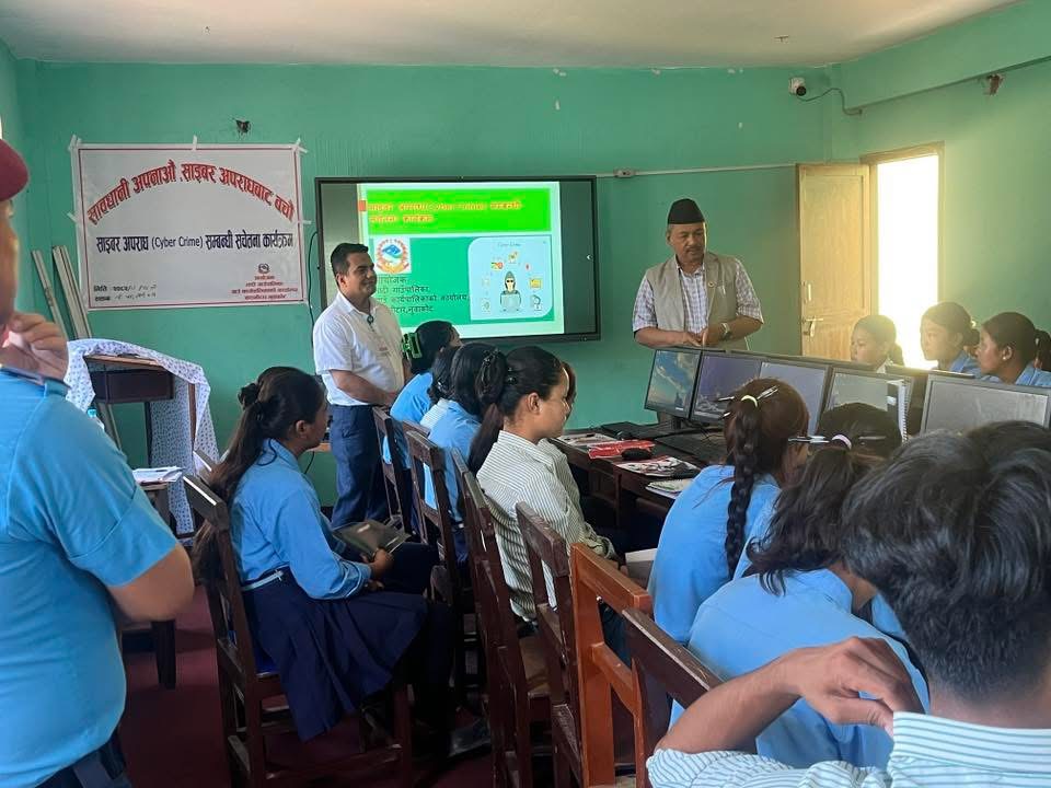 आज मिति २०८२।०२।१४ गते " सावधानी अपनाऔं ,साईबर अपराधबाट बचौं "भन्ने मुल नारा सहित तादी गाउँपालिका अध्यक्ष श्री सन्तमान तामाङज्यूको अध्यक्षता,विशेष अतिथिहरु उपाध्यक्ष सन्जु प्याकुरेलज्यू,अमर ज्योति प्राविधिक विद्यालयका प्रधानाध्यापक श्री सुरेन्द्र अधिकारीज्यू,अतिथिहरु इलाका प्रहरी कार्यालयका बरिष्ट सई श्री दीपेन्द्र प्रसाद जैसवालज्यू,स.हल्दार बल बहादुर थापाज्यूको आतिथ्यतामा तथा कायक्रम प्रशिक्षक तादी गाउँपालिका सूचना प्रविधि अधिकृत श्री पुरुषोतम वाग्लेज्यूको उपस्थितिमा साइबर अपराध (Cyber Crime)सम्बन्धी सचेतना कार्यक्रम अमर ज्योति प्राविधिक विद्यालयमा कक्षा १० मा अध्ययनरत विद्यार्थी भाई बहिनी