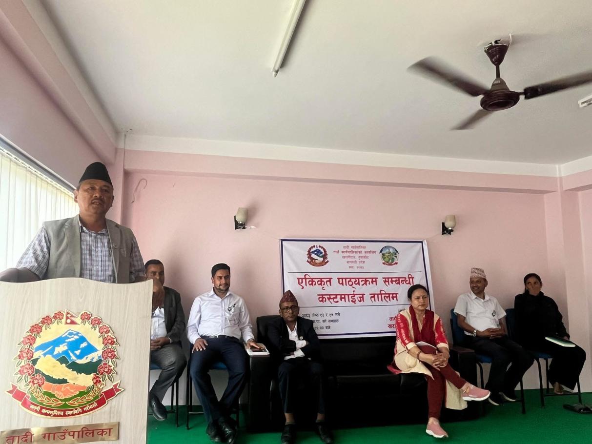 आज मिति २०८२।०२।१४ गते तादी गाउँपालिकाको शिक्षा,युवा तथा खेलकुद शाखाको आयोजनामा भएको दूई दिने एकिकृत पाठ्यक्रम सम्बन्धी कस्टमाईज तालिम कार्यक्रमको समापन समारोह तादी गाउँपालिका अध्यक्ष श्री सन्तमान तामाङज्यूको अध्यक्षता,विशेष अतिथिहरु तादी गाउँपालिका उपाध्यक्ष श्री सन्जु प्याकुरेलज्यू,प्र.प्र.अ श्री ध्रुब खनालज्यू,शिक्षा अधिकृत श्री सन्तोष खनालज्यू,प्रा.स टिका देवी खरेलज्यू, कार्यक्रम प्रशिक्षक श्री कुमार राज श्रेष्ठ,श्री जनार्दन नेपालज्यू,शिक्षक सहजकर्ता श्री दिपक प्रसाद सिटौलाज्यू,तादी गाउँपालिका अन्तरर्गत सामुदायिक विद्यालयका प्रतिनिधि शिक्षकहरुको उल्लेख्य सहभागितामा सम्पन्न भयो ।