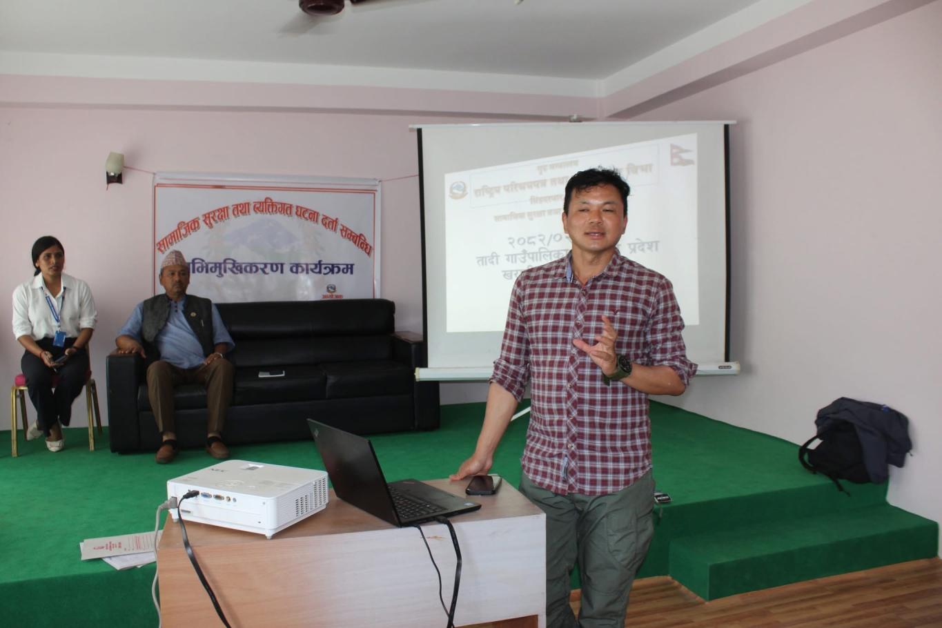 आज मिति २०८२।०२।२५ गते तादी गाउँपालिकाको पञ्जिकरण सेवा ईकाईको आयोजनामा तादी गाँउपालिकाको अध्यक्ष श्री सन्तमान तामाङज्यूको अध्यक्षता ,विशेष अतिथिहरु वडा अध्यक्षहरु अश्मिन कुमार पाण्डेज्यू,सरोज भण्डारीज्यू,सिरमान तामाङज्यू,प्रवत्ता श्री शर्मिला उप्रेतिज्यू,कार्यपालिकाको सदस्यज्यूहरु,वडा सदस्यज्यूहरु,कार्यक्रम प्रशिक्षक राजिव राईज्यू,तादी गाउँपालिकाका विभिन्न शाखाका कर्मचारीज्यूहरु,विद्यालयका प्रतिनिधि शिक्षकज्यूहरु,वडा सचिवज्यूहरु तथा सहायक कम्प्यूटर अपरेटरज्यूहरुको सहभागितामा सामाजिक सूरक्षा तथा व्यक्तिगत घटना दर्ता सम्बन्धी १ दिने अभिमुखिकरण कार्यक्रम भई सम्पन्न भयो ।